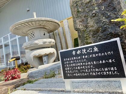 幸水洗心庭に看板が立ちました! 2023年4月17日(月) 幸水洗心庭に看板が立ちました。黒の背景にシルバーの枠と文字で、50周年にふさわしい美しいデザインとなっております。是非貴社に立ち寄った際は御覧になってみてください。