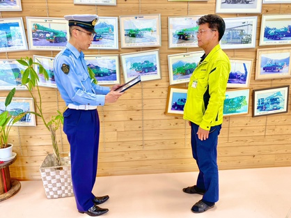 安全運転管理モデル事業所として指定されました! 2023年6月13日(火) 協同重機(有)が防府警察署長、防府安全運転管理者協議会により「安全運転管理モデル事業所」に指定され、6月12日昨日当社にて表彰式が行われました。防府安全運転管理者協議会会長より直々に表彰状と指定書、看板をいただきました。 今後も、モデル事業所として企業の模範となるような安全運転管理を社員一同努めます。